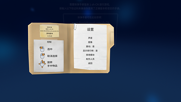 毫无疑问,本作是一个不折不扣的多人合作游戏,且几乎到了单人游戏无法进行下去的地步。主要目的是让复数的玩家保持一个交流过程,通过手册提供的指示来让一位对另外一位进行拆弹指示,因此其实非常适合情侣远程或者损友之间互相坑害,不过奈何我能够通过分屏的形式来一边查阅手册一边拆弹,只是游戏本身也变得乏味许多。