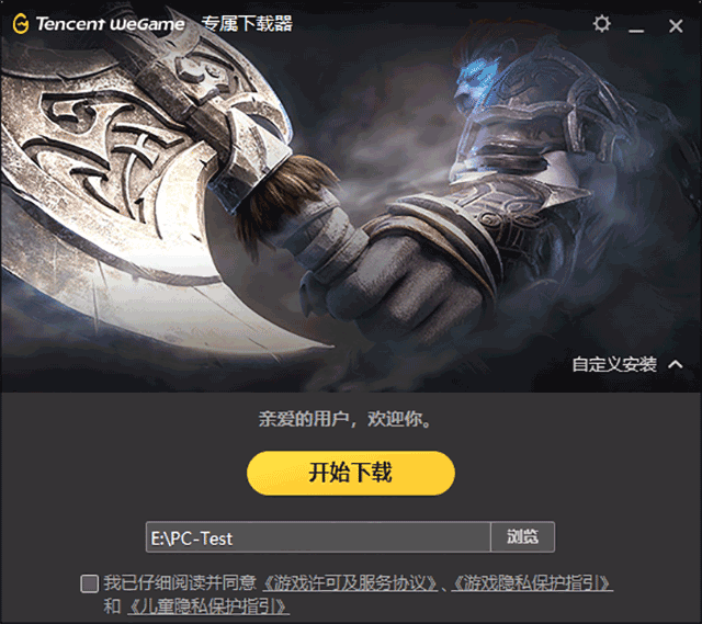 第一步:点击在本站下载好的压缩包中的WeGame专属下载器,也可以选择自定义安装调整安装位置(需安装至纯英文路径);