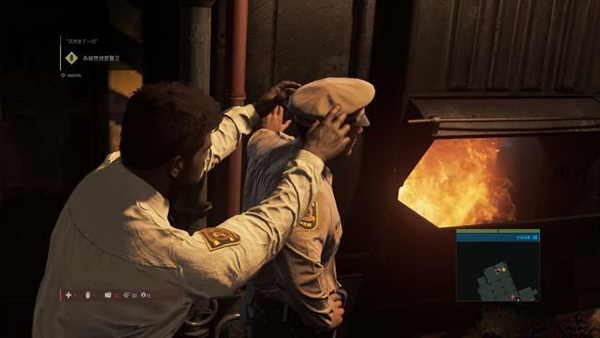 地图:屏幕右下角显示迷你地图,它有一个指北针,黑色三角表示林肯,绿色标志是同盟,红色标志是敌人,黄色菱形是指主线任务位置。