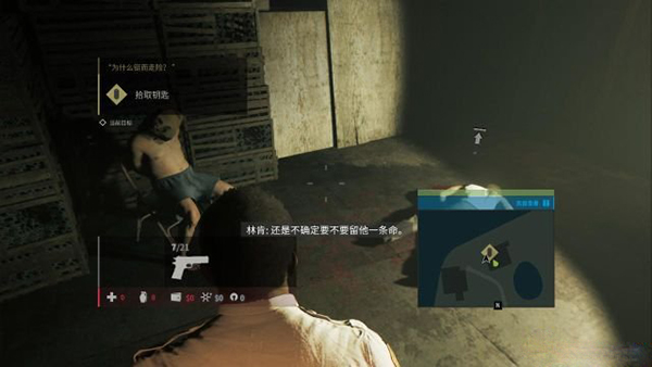武器:屏幕左下角显示林肯的武器弹药情况、血量、手雷以及资金。