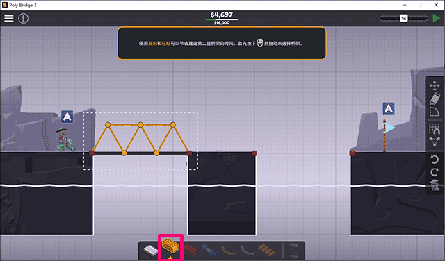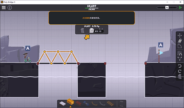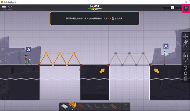 3、这里需要玩家点击下方的钢板材料来建设桥梁;