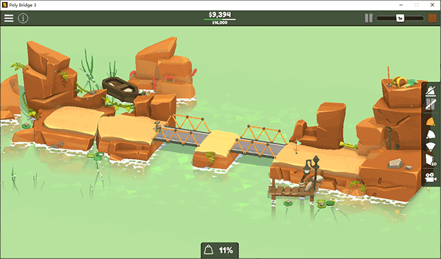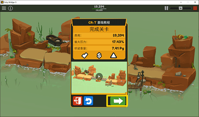 在本站下载并解压好游戏后,双击游戏文件夹中的“Poly Bridge 3.exe”就可以开始游戏了