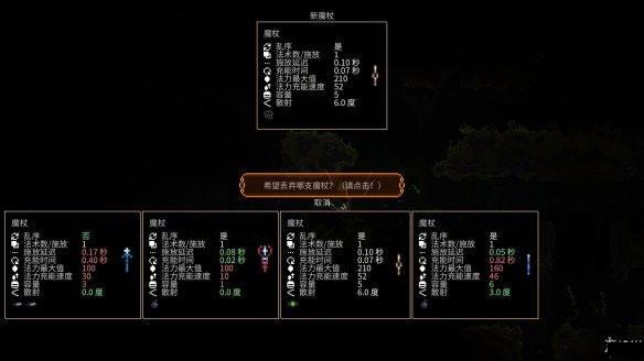 同时,女巫游戏有着非常多种类的魔杖,它们的参数各不相同,分为乱序,法术数/释放,施放延迟,充能时间,法力最大值,法力充能速度,容量,散射角度跟法术能力,其中最重要的是法术能力,法术的添加决定了该武器的能力,既玩起来感觉很刺激,又能让玩家看得很过瘾的作品。
