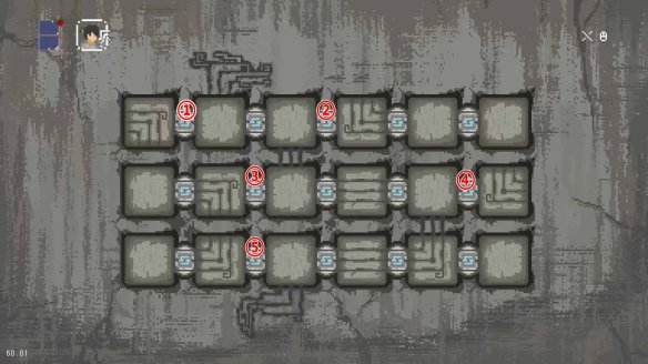 进入山洞前要解开拼图,目标是将龙头、龙尾连起来。具体方式就是将下图中用序号标出来的旋钮各旋转一次即可。