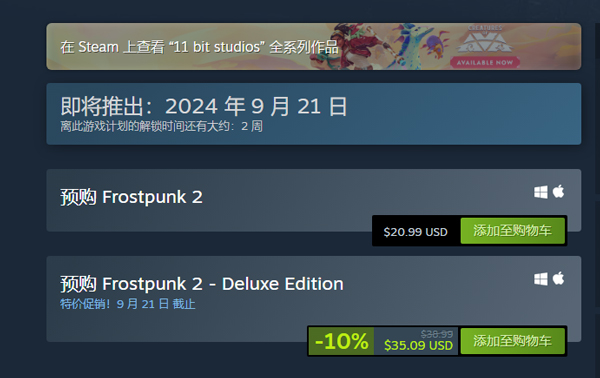 冰汽时代2标准版和豪华版有什么区别?