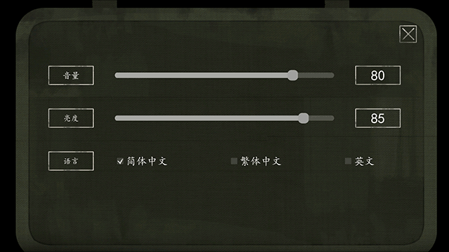 2、在设置界面中,玩家可以对音量、亮度,语言进行调节;