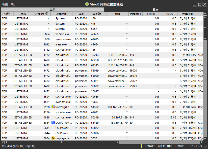 Moo0网络连接监视器是一款专业的网络辅助工具。它能够监视你正在使用网络的进程,并展示它们的各项数据,包括状态、路径、持续时间等,同时它还支持保存日志记录,时刻关注你的网络传输信息,保护你的电脑免收网络病毒影响。本站提供Moo0网络连接监视器绿色版下载,无需安装,完全免费,欢迎下载尝试。