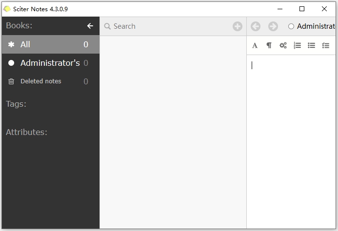 sciter notes(笔记文档管理器)是一款专业的简单实用的笔记文档管理软件,软件完美支持用户将您的笔记存储在自己的硬盘或记忆棒上,其主窗口分为三个不同的面板,第一个列表列出了所有类别、标记和属性,第二个列表提供了所有笔记和待办事项的预览,还允许您搜索特定内容,第三个也是最重要的一个列表用于编写和编辑文本,有效帮助用户轻松进行工作,提高工作效率,有需求的用户可在此点击下载体验!