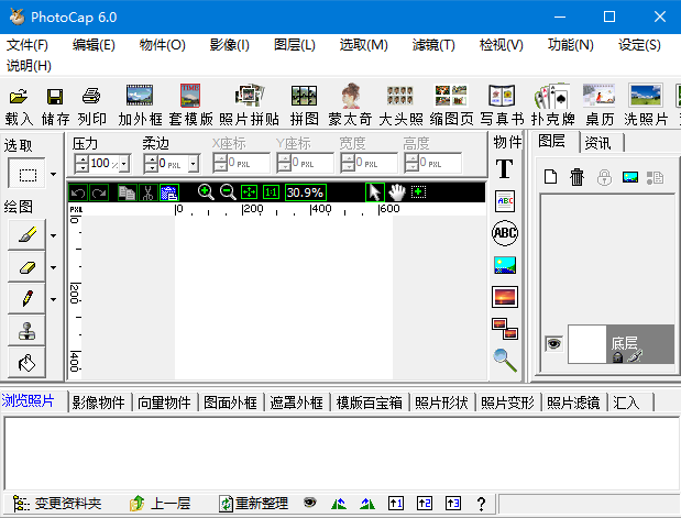 9、模板大师: 模板可由任意的物件组成,效果千变万化,是PhotoCap的强项,在此你可以快速套上模板的特效。