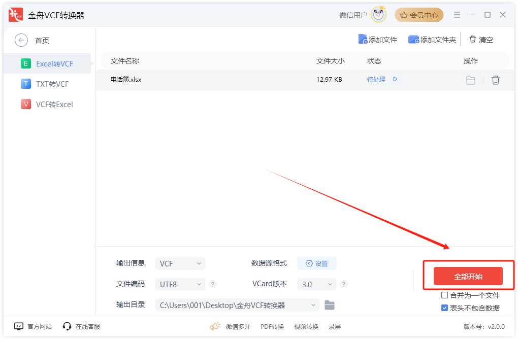 支持TXT格式批量转VCF