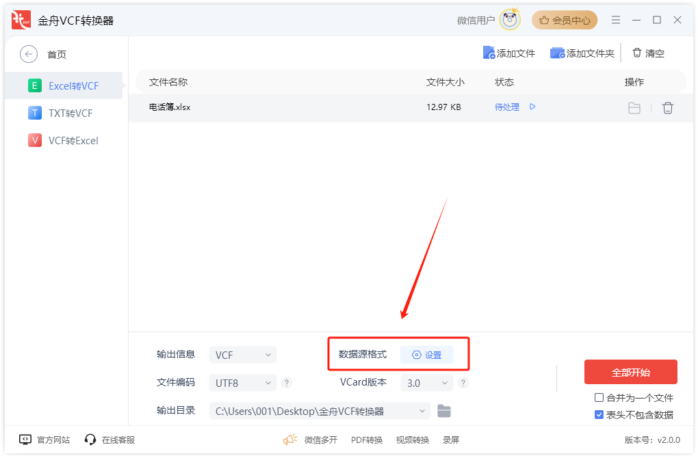 3、VCF转Excel