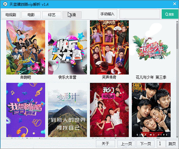 1、下载软件压缩包文件,点击“天蓝播放器V1.4.exe”即可启动软件,首先选择想看的栏目,如下图所示: