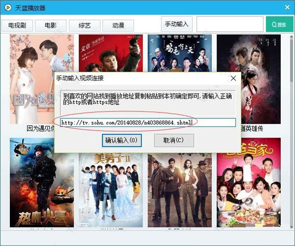 4、打开天蓝播放器,将网页链接粘贴
