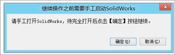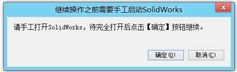 【注意】:一定要等到SolidWorks完全启动后单击“确定”按钮继续执行,否则可能会启动两个SolidWorks。