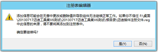 8、提示将插件注册文件加入到注册表中:单击【是】注册迈迪插件。