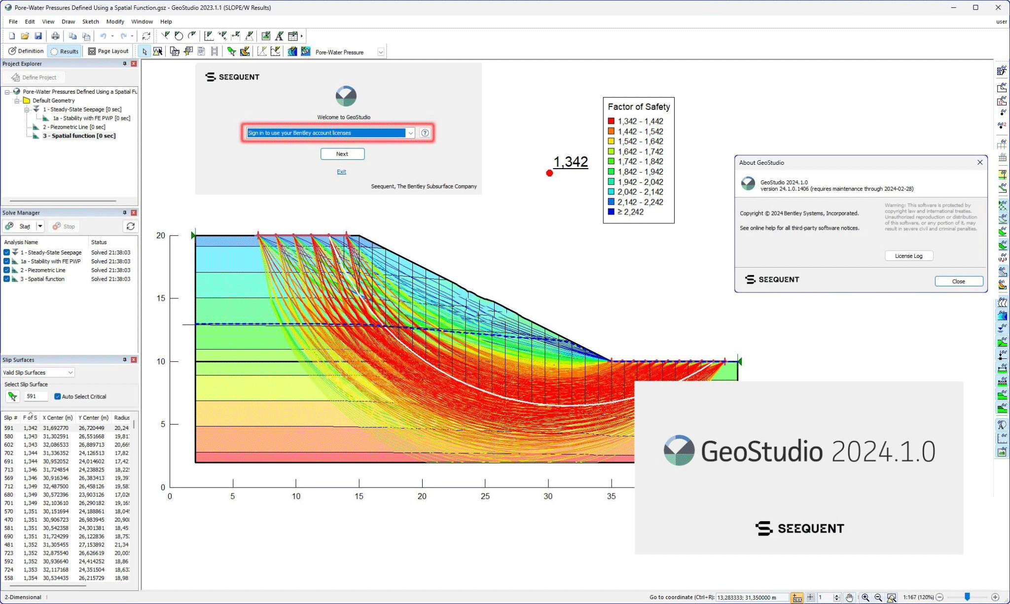 GeoStudio是一款功能强大的岩土模拟软件,软件拥有友好的界面、简单清晰的建模步骤和参数设定,使得软件易学易用,高效建模,节省分析时间,而且也可以沿滑移面把总应力和有效正应力同时显示出来。用户还可以使用GeoStudio绘制很多图形并把它们保存为一个数据文件,这样只要打开数据文件,就可以立刻得到图形操作简单又便利,有需求的小伙伴们可在此下载!