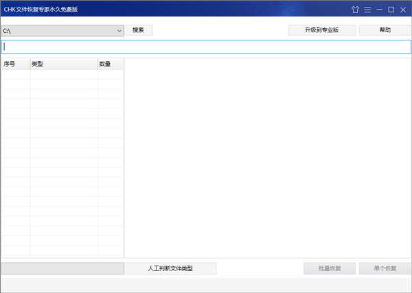 只需选择CHK文件所在的磁盘分区,点击搜索,软件就会自动对整个磁盘进行扫描,然后把搜索到的CHK文件根据文件类型分类显示,也可以选择对指定文件夹进行CHK文件的搜索扫描。