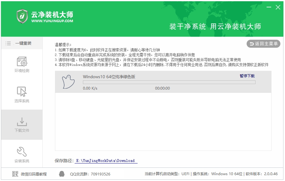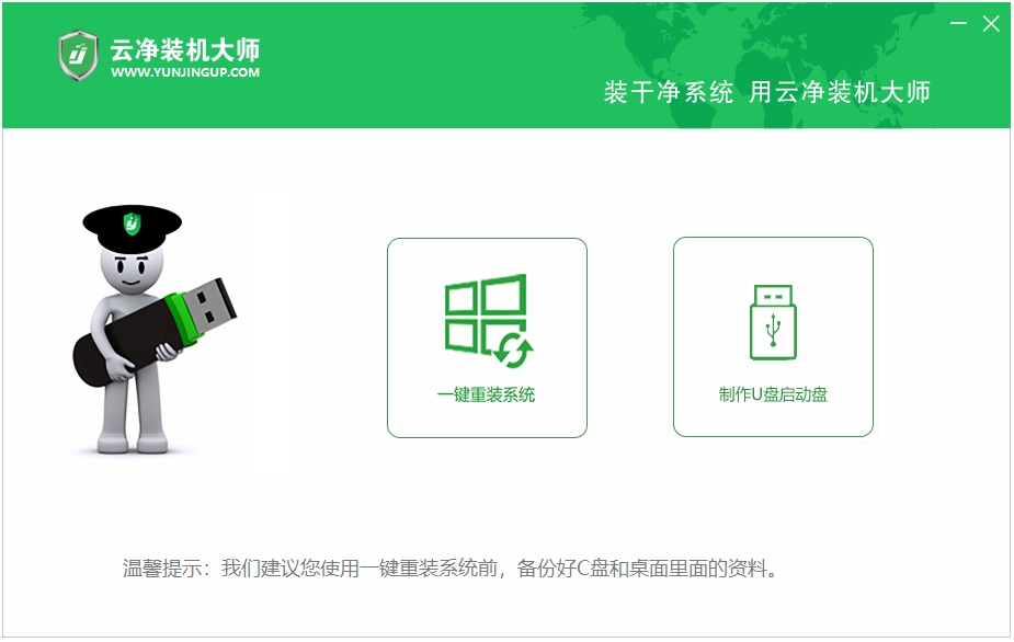 云净装机大师是一款操作简单的电脑系统重装软件,具有一键重装系统、制作U盘启动盘、操作系统下载三大功能。目前市面上的盗版系统多种多样,但是云净装机大师支持微软原版安装,没有那些预装和捆绑软件,你可以根据自身电脑情况安装XP、WIN7、WIN8、WIN10系统,支持32位和64位安装,不用你会专业的电脑技术,只需要简单点击下一步就可以完成。