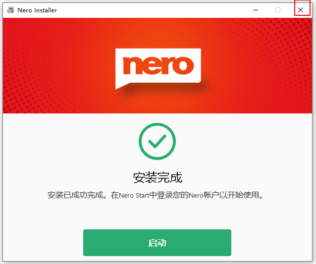 5、同样成功安装后,先不要启动,点X关闭;