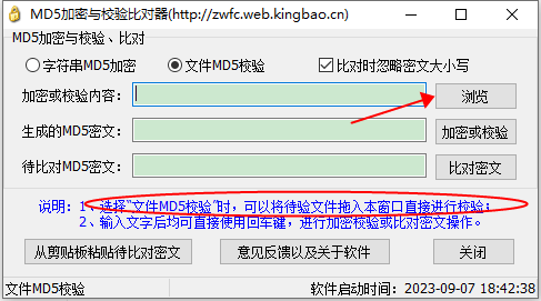 1、选择“文件MD5检验”时,可以将待验文件拖入本窗口直接进行校验。