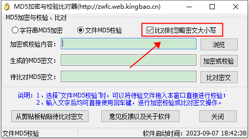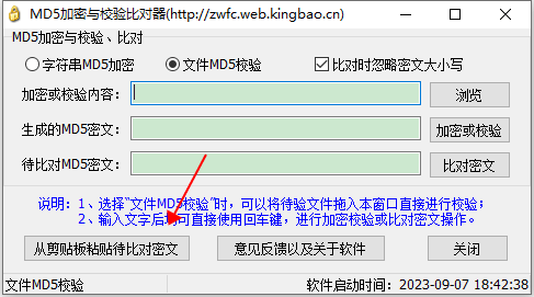 2、输入文字后均可直接使用回车键,进行加密校验或比对密文操作。