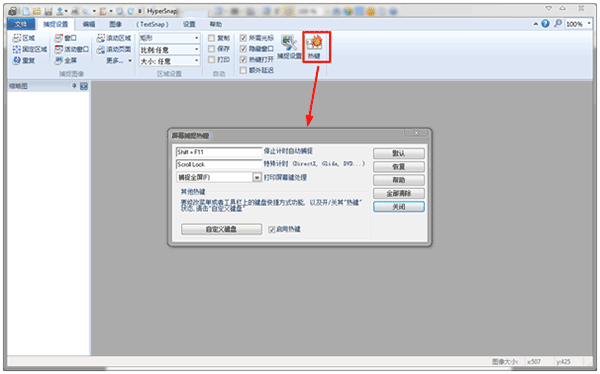 4、点击“捕捉设置”下的“热键”,在这里就可以更改快捷键和恢复快捷键设置。