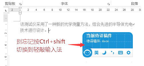 第三步:双击打开待译稿件,切换到轻敲输入法,开始录入吧。