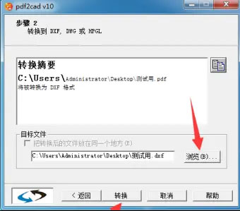 进入新界面,点击【浏览】对转换后文件的路径进行更改,一般更改到非系统盘或用户指定位置,设置好之后点击【转换】;