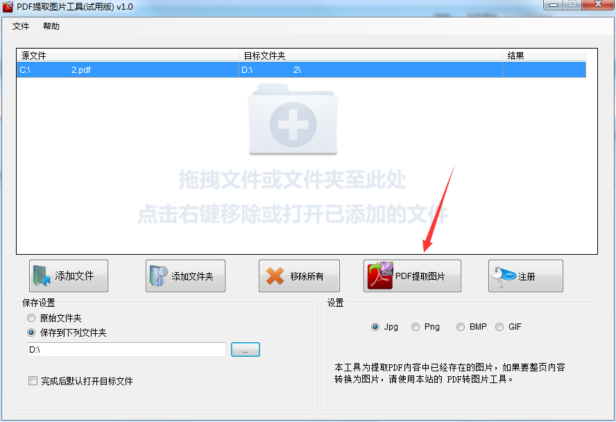 5、设置完成后点击“PDF提取图片”开始提取即可。