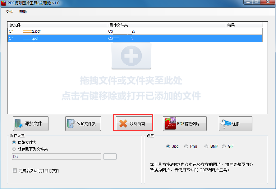 2、如果添加错误可以点击“移除所有”移除已添加的文件,