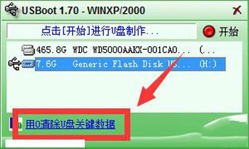 3、然后选择【用0清楚U盘关键数据】——【开始】