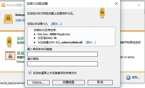 Rohos微型U盘加密是一款非常强大实用的u盘加密免费软件,该软件可以在你的u盘中创建加密的隐藏分区并且将你的u盘加密起来。如果你的u盘中拥有大量的私人私密文件,并且希望将它们安全地保储在usb驱动器里,那么你就可以利用软件提供的密码和安全加密来保护您的文件,欢迎有需求的用户前来下载。