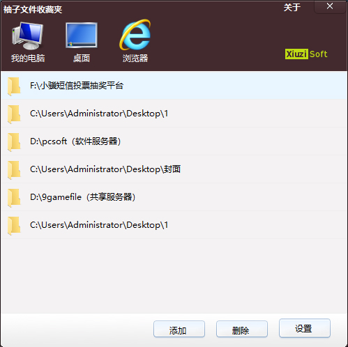 袖子文件收藏夹是一款绿色小巧的桌面工具,你可以将常用的工具、软件添加到其中,它能帮助你快速的打开他们,虽然看上去也只是帮你节约那么一点点时间,但是积累下来也是一个很大的数字,帮助你提高工作效率,有时候软件就是应该如此,越简单方便,反而越实用。有需要的朋友就赶紧下载使用吧。