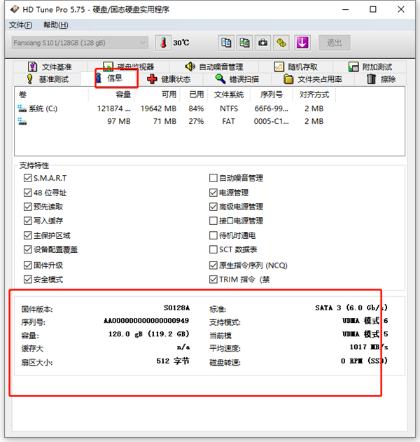 4、硬盘信息下可以看到硬盘的固件,序列号等相关的信息。其中序列号很多软件用来绑定授权,硬盘离开这机器就无法使用该软件。
