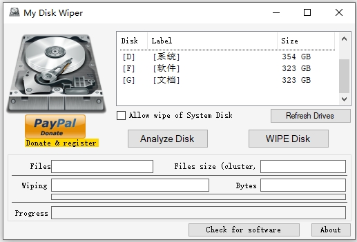 这个工具叫My Disk Wiper,是一个绿色免费的硬盘格式化工具,用来安全删除硬盘、闪存、U盘、SD卡里的内容。它能擦除所有文件,并且用标准模式覆盖文件,这样被删掉的文件就无法恢复了。更贴心的是,在删除前还会把文件名也删掉,保护你的隐私。这个软件特别适合在卖或者转让电脑之前使用,确保别人拿不到你的数据。