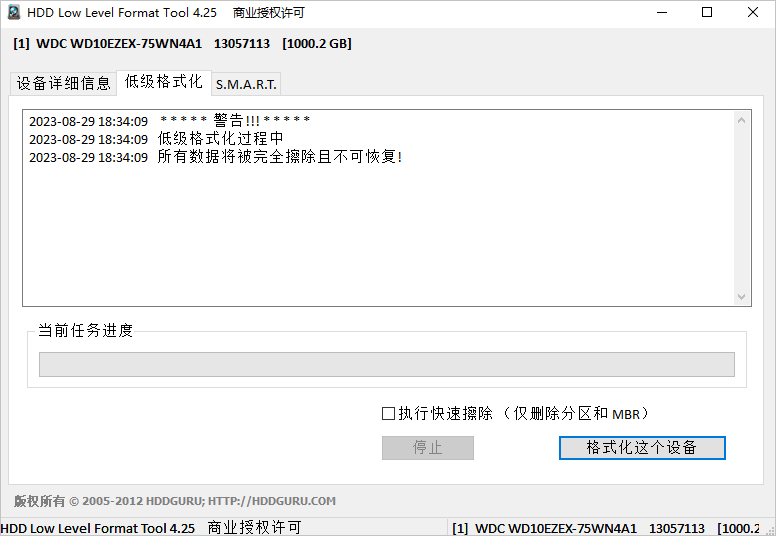 1、低格后所有数据将被完全擦除且不可恢复!所以在使用前,请一定看清楚了,选择好要格式化的移动硬盘。