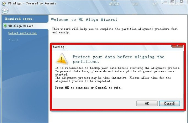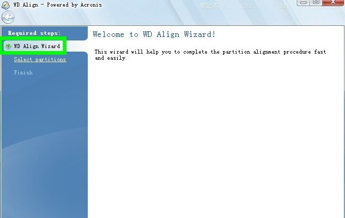 1、打开WD Align,界面很简单,意思是通过该步骤可以帮助我们简单快速的去完成硬盘的4K对齐操作。