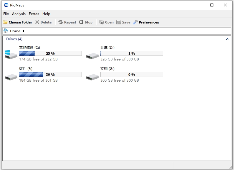 3、ridnacs通常比其他类似磁盘分析仪更简单,几种格式的导出分析,它不包含任何高级选项。