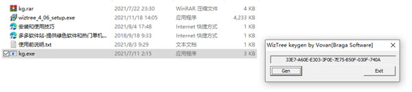 1、下载本站文件解压得到WizTree安装包及注册机文件;
