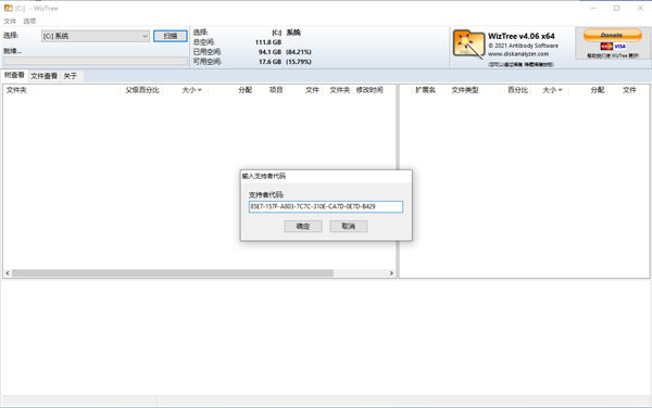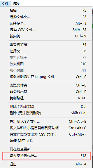 8、打开WizTree,点击左上角的文件---输入支持者代码;