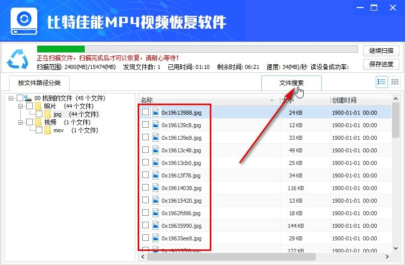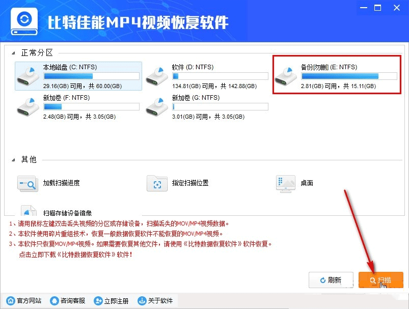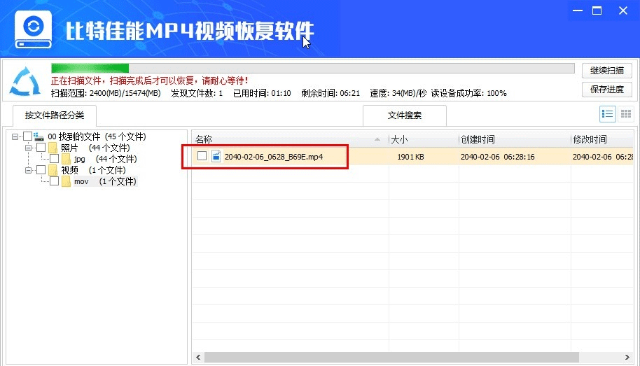 1、仅支持恢复MOV/MP4视频文件及。jpg图片文件,如需恢复其他文件,请使用比特数据恢复软件。