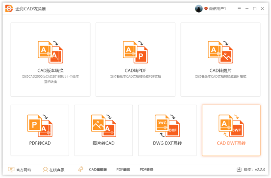金舟cad转换器支持和输出的格式