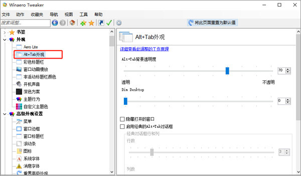 2、支持调整Windows桌面、任务栏外观及其行为设置
