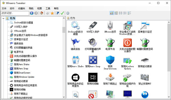 4、行为功能指的是在Windows中系统各项默认设定以及操作行为,该分类下涉及的调整项较为分散,其主要整理了一些在日常优化中较为实用的几个方面,如禁用Windows Update、驱动更新、禁用Windows自动安装商店应用与广告、禁用USB写入等等;