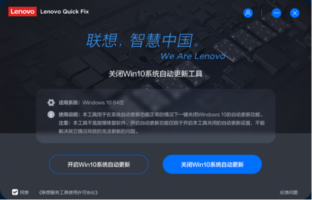 1、联想关闭Win10系统更新工具为用户提供简单的禁止更新方式。