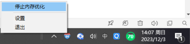 6、如需要关闭内存优化同样是右击鼠标,然后点击“停止内存优化”。