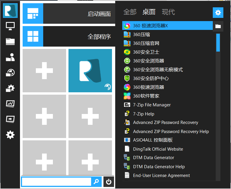 win8系统的Metro界面主要特色是以“磁贴”为主要方式来访问用户最喜爱的应用程序,这个使用过Win8及Windows Phone的用户应该会比较清楚。而RevierSoft新推出的start menu reviver延续了这一风格,不过界面相对小了很多,只需用手轻轻按压并滑动,你就可以将你喜欢的应用图标放在开始菜单中,你也可以直接在搜索栏或使用一些发现工具搜索你电脑中所安装的应用程序。另外本款win8.1开始菜单同时支持传统桌面应用和Metro应用,更贴心的是它有多种主题可供选择,你可以根据自己的桌面颜色和风格自定义自己开始菜单。