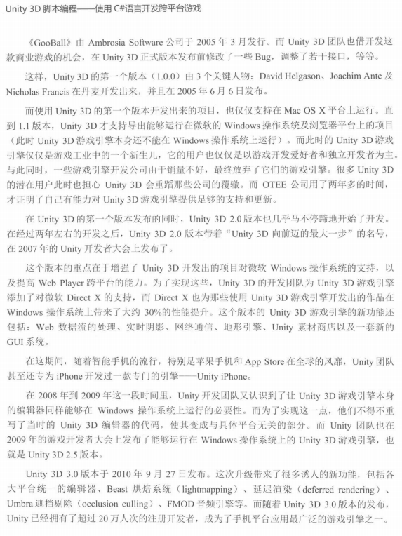 unity3d脚本编程 使用c语言开发跨平台游戏是一本Unity 3D脚本编程书籍,由陈嘉栋编著。本书内容丰富翔实,以Unity 3D的跨平台基础Mono及其游戏脚本语言C#为基础进行讲解,全面系统地剖析了Unity 3D的跨平台原理以及游戏脚本开发的特点。作者不仅分析了c#语言在unity3d脚本编程中的知识点,还会带领各位读者走进更加底层的cil代码层,了解unity3d借助mono跨平台的原理,最后还会关注unity3d引擎本身的资源管理理、项目优化以及编译的内容,无论是初次接触Unity 3D脚本编程的新人,还是有一定经验的老手,相信都可以借本书来提高自己在Unity 3D 方面的水平。