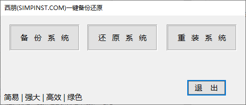 电脑用久了,总会遇到几个难缠的问题,就好比:电脑中病毒了、系统文件删除、系统进不去等等,所以才会出现各种不同的一键备份还原系统,但目前互联网中很多同类的软件虽说很牛,但操作起来对我们小白用户来讲还是那么的复杂,所以今天小编就给大家带来了这款Simpinst(西朋一键备份还原系统),它是目前小编见过最方便、简单、快速的备份还原软件,能够有效的将电脑所有的信息进行一个全面的备份,并且通过还原功能进行系统还原的操作,就算电脑在备份后中毒什么的,都可以还原成备份前的那个系统!当然,Simpinst不仅仅是遇到问题就必须去使用,没有遇到问题也可以还原,就当是给电脑进行一个清理操作吧,而备份则一般都是在重装系统之后在进行操作的!