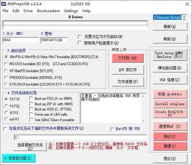 RMPrepUSB 兼容多种文件系统和启动选项,包括常见的 FAT16、FAT32、NTFS 文件系统和 Windows、Linux、DOS 等启动选项。这使得用户可以在不同的操作系统和环境下使用和运行准备好的 USB 设备